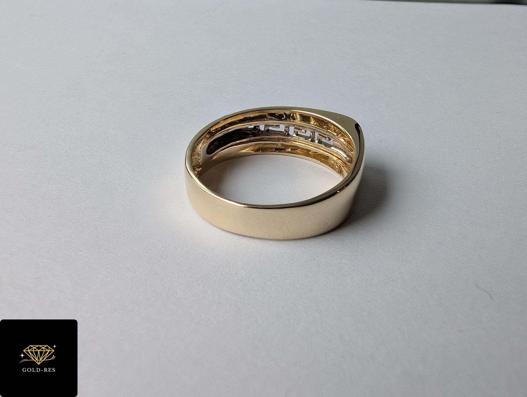 Do sprzedania złoty pierścionek, w próbie złota 585. Wyrób jest używany – posiada oznaczenie próby złota.