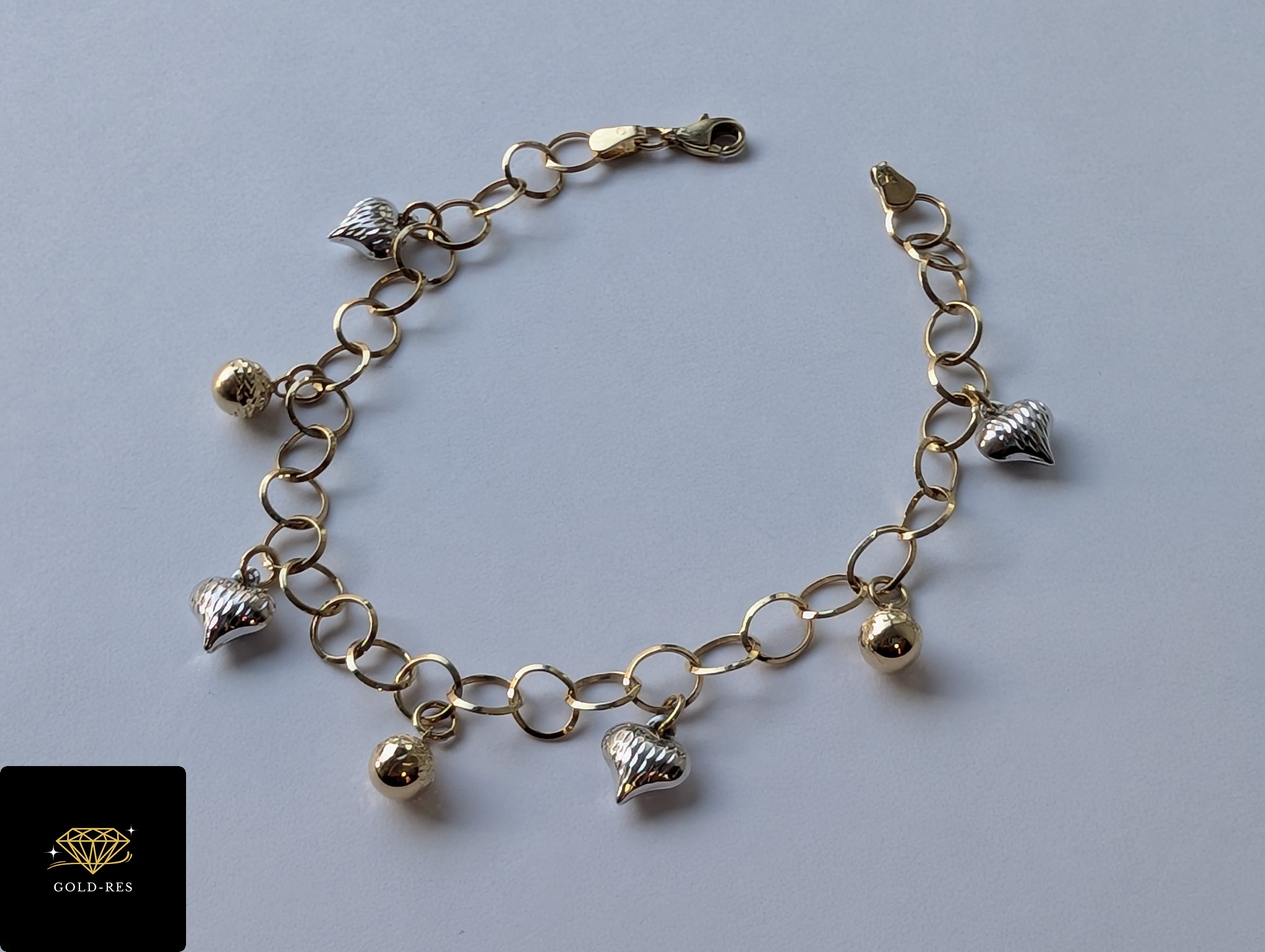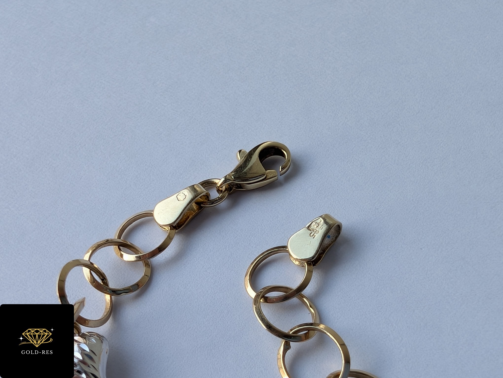 Do sprzedania złota bransoletka, w próbie złota 585. Wyrób nie był używany – posiada cechę probierczą. Bransoletka pełna, nie dmuchana.
