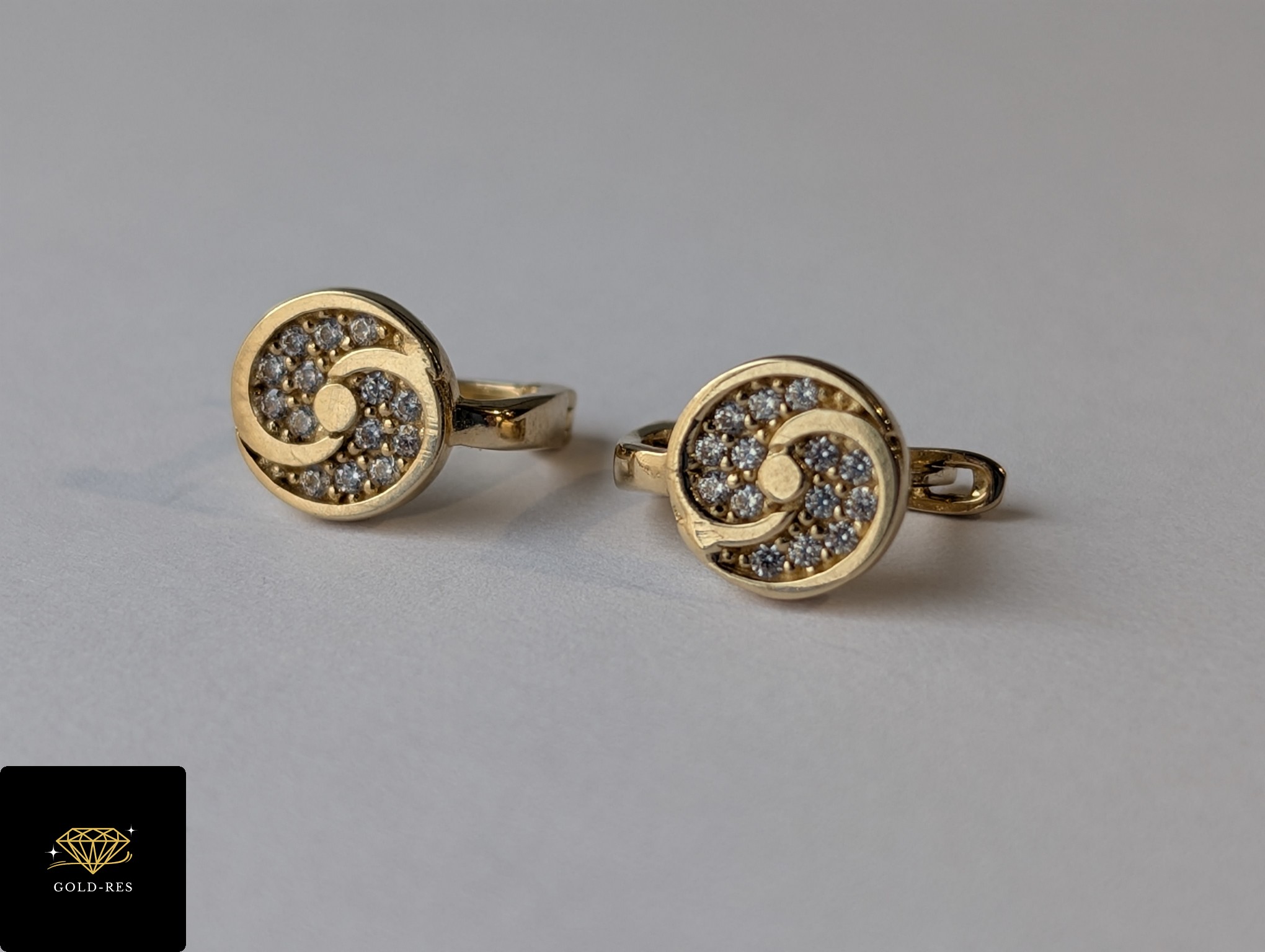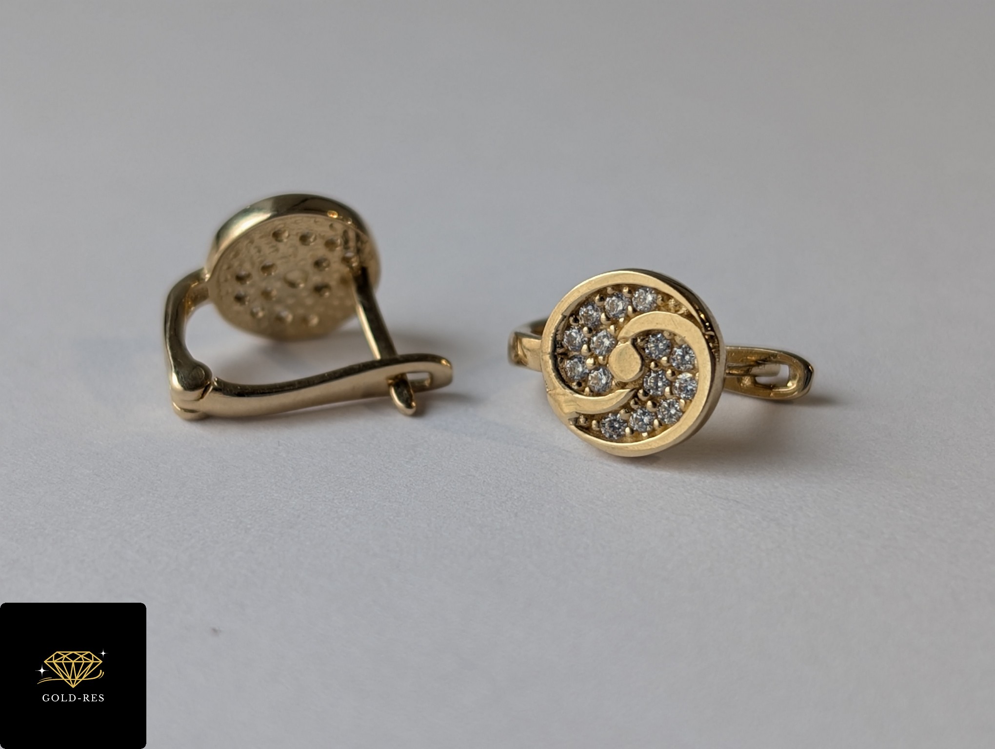 Do sprzedania złote kolczyki, w próbie złota 585. Wyrób nie był używany – posiada oznaczenie próby złota.