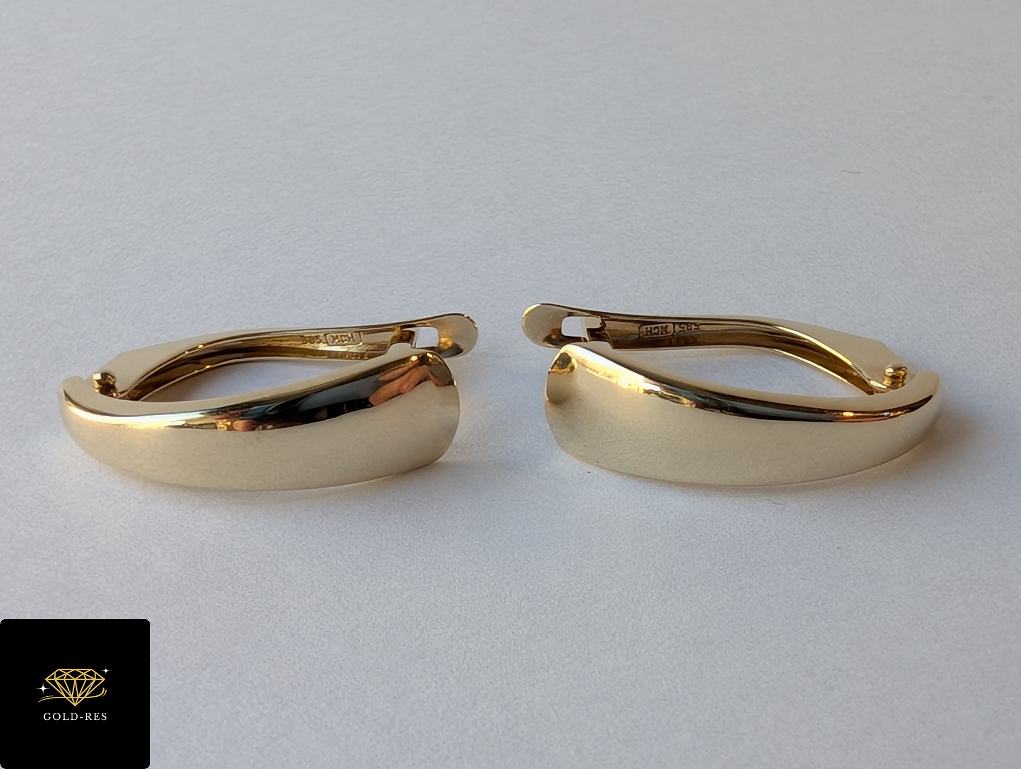 Do sprzedania złote kolczyki, w próbie złota 585. Wyrób jest używany – posiada oznaczenie próby złota.