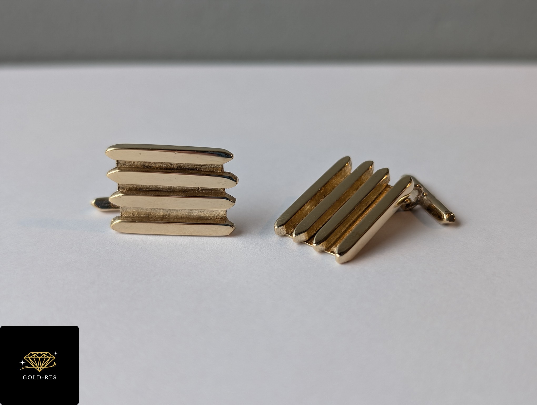 Do sprzedania złote spinki do mankietów, w próbie złota 375. Wyrób jest używany – posiada cechę probierczą.