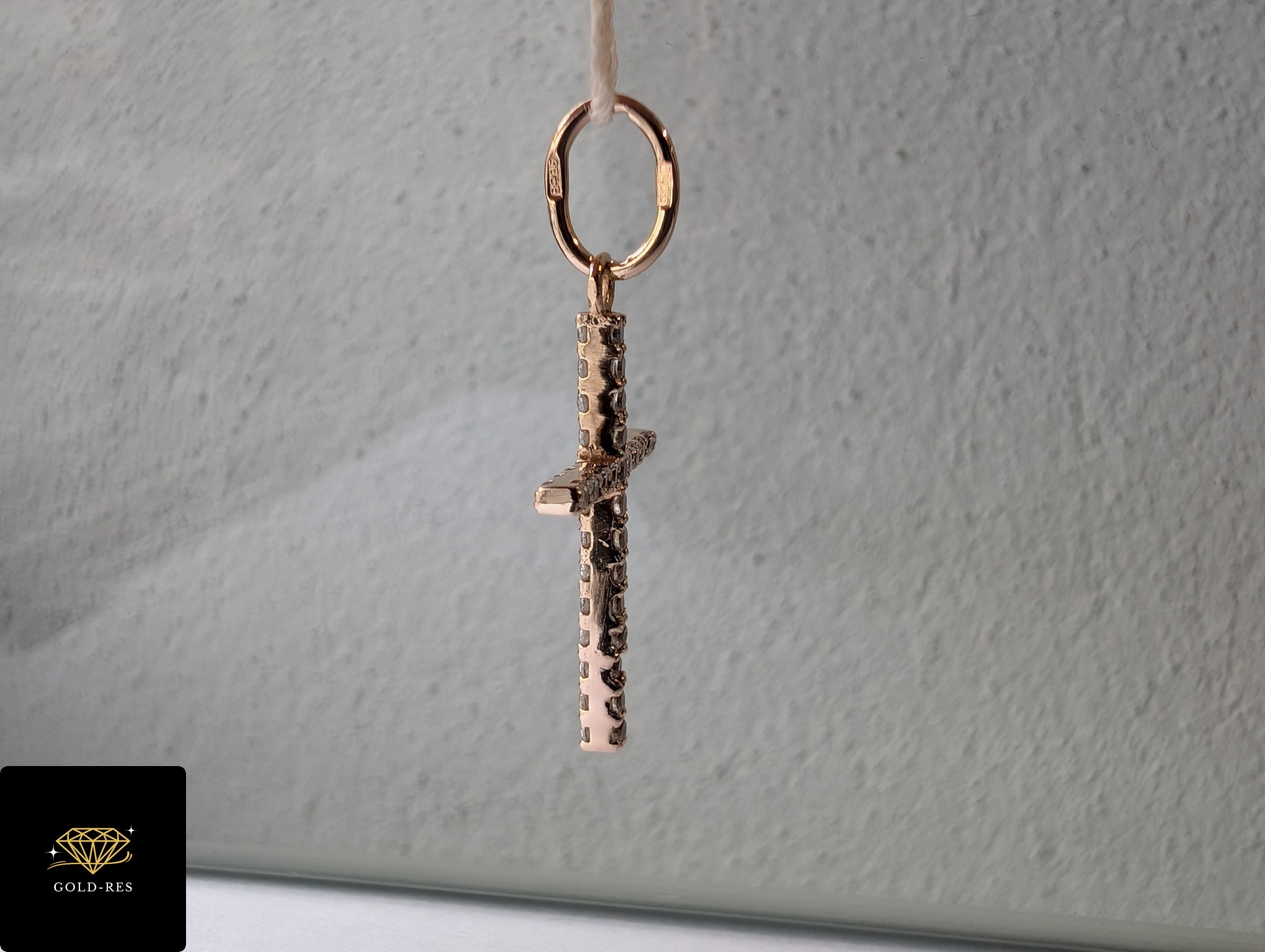 Do sprzedania złoty krzyżyk, w próbie złota 585. Wyrób jest używany – jak nowy – posiada cechę probierczą. Cyrkonie są po obydwu stronach krzyżyka.