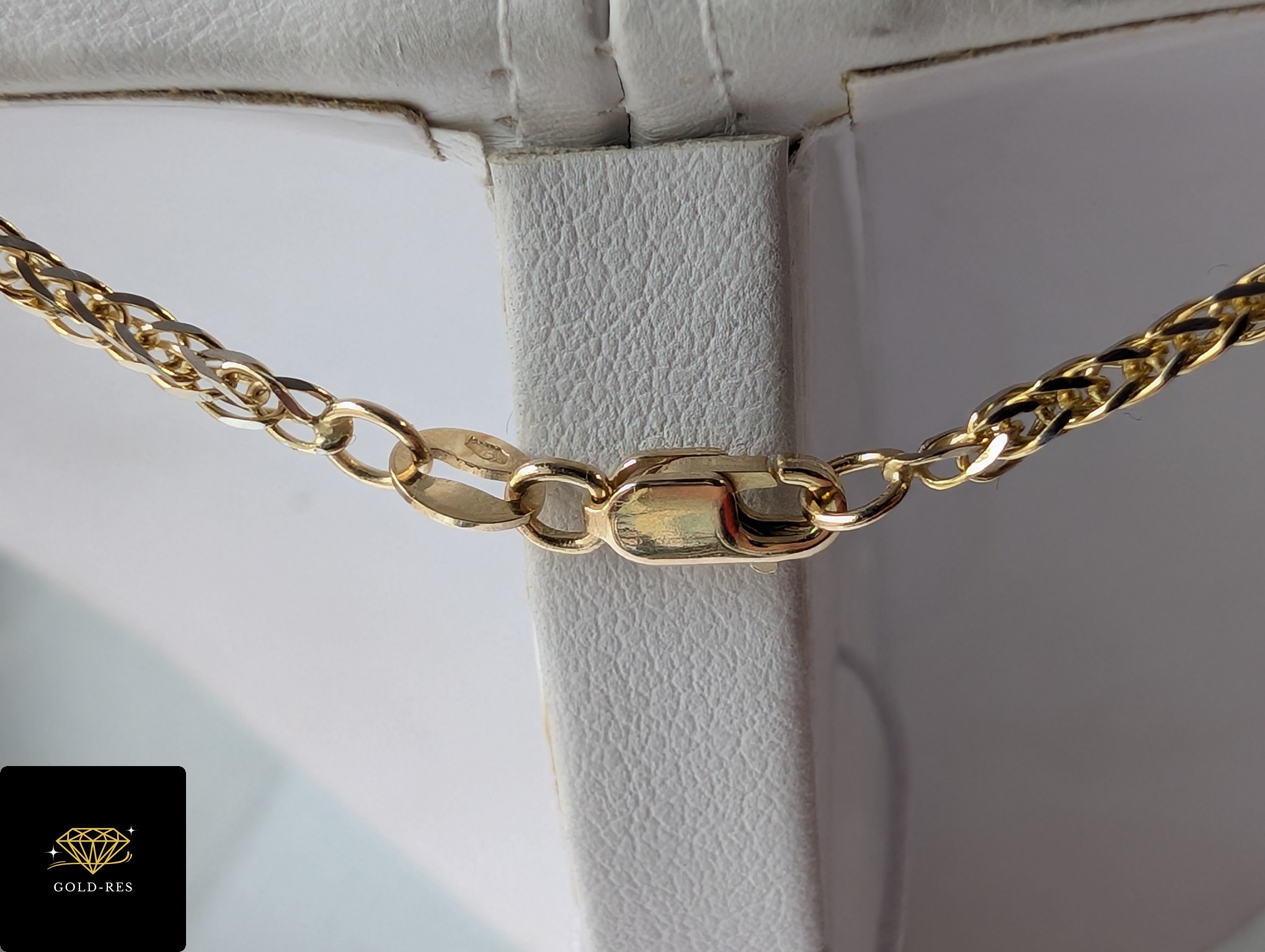 Do sprzedania złoty łańcuszek, w próbie złota 585. Wyrób jest używany (jak nowy) – posiada cechę probierczą. Łańcuszek pełny, nie dmuchany.