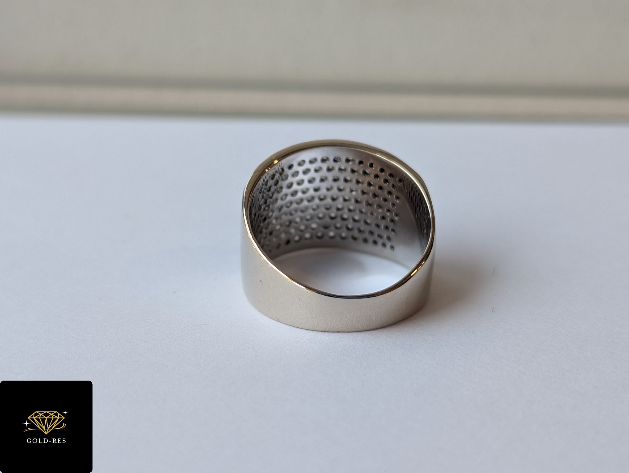 Do sprzedania złoty pierścionek, w próbie złota 750. Wyrób jest używany – posiada oznaczenie próby złota.